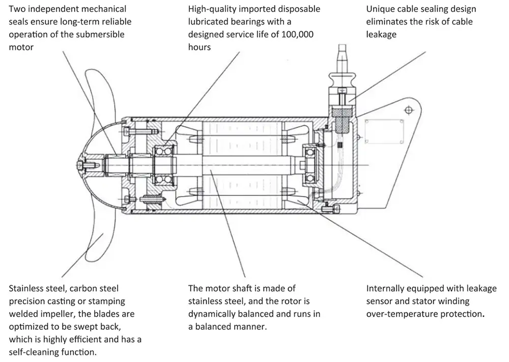 A submersible mixer is a piece of equipment that uses a high-speed rotating underwater impeller to generate powerful flow and mixing. It is primarily used in fields like wastewater treatment to prevent sedimentation and mix liquids.